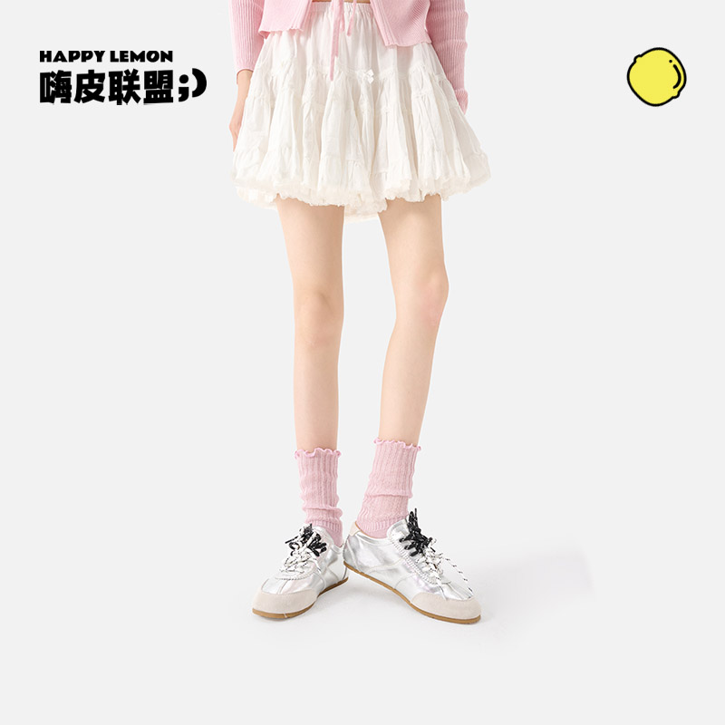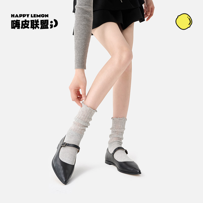 夏天miu系 灰色芭蕾风中筒袜韩系堆堆袜单鞋 蝴蝶结袜子女夏季 薄款