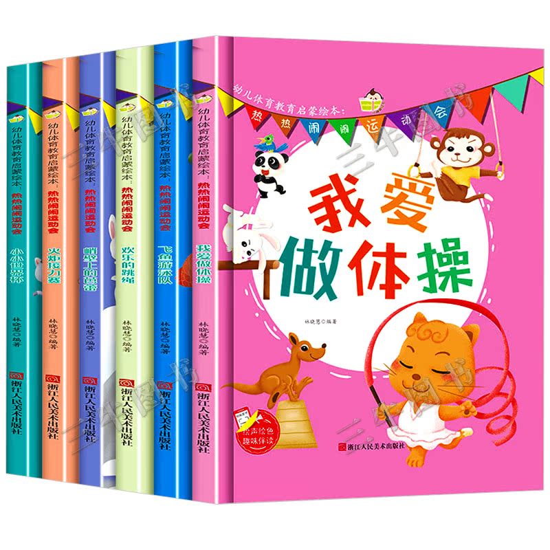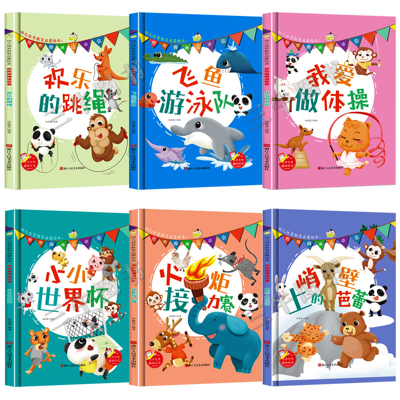 幼儿体育教育启蒙绘本热热闹闹运动会全套6册幼儿园阅读小班中班大班精装 硬壳绘本儿童我爱做体操小小世界杯小火炬接力赛游泳跳绳