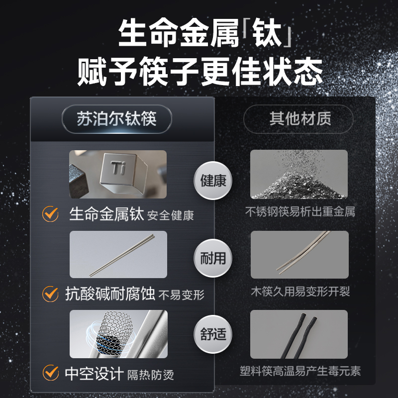 双枪316L不锈钢筷子家用防滑防烫304食品级抗菌防霉快子高档酒店