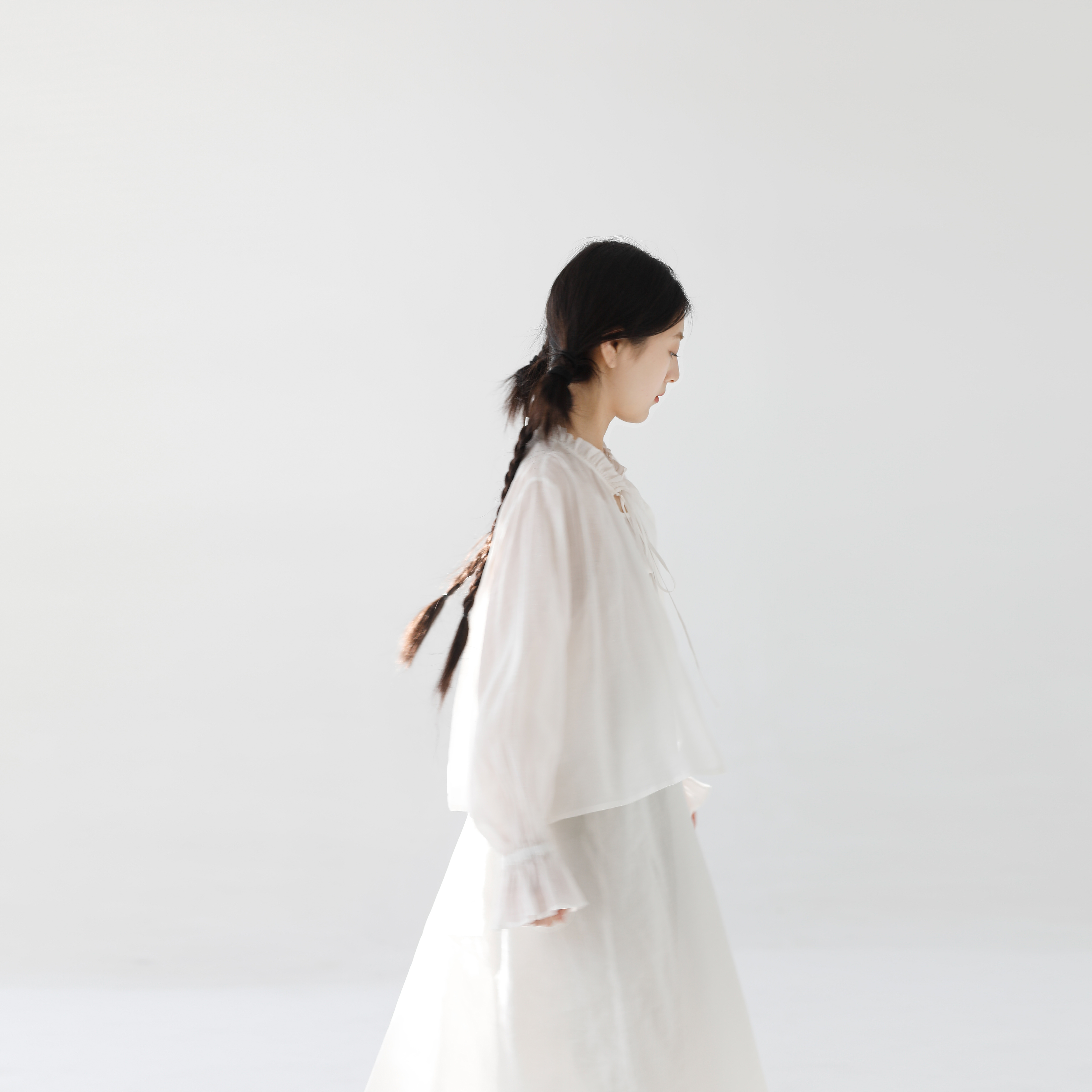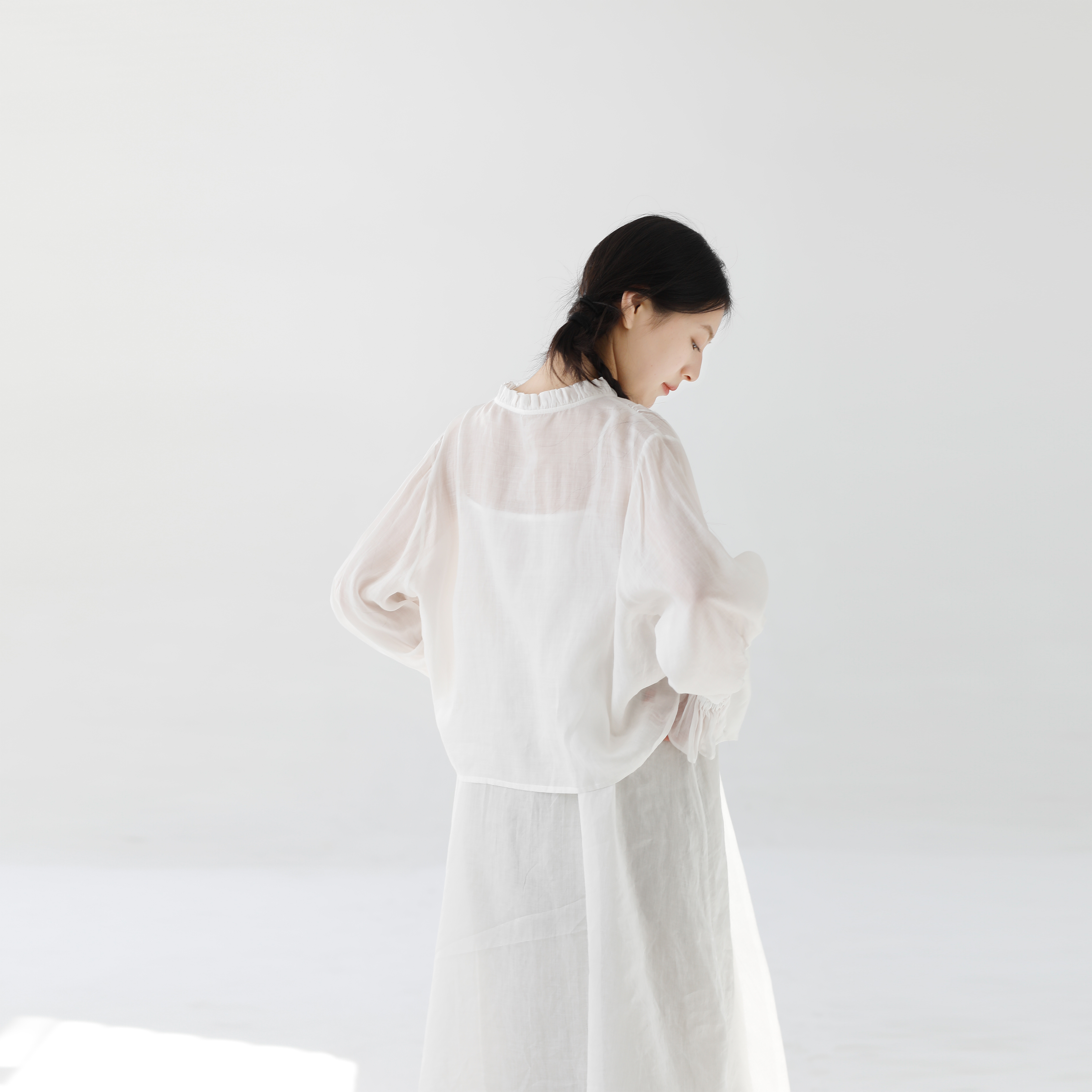 COCOBELLA重工压褶缎面优雅立领衬衫 两穿衬衣SR0045 女新中式