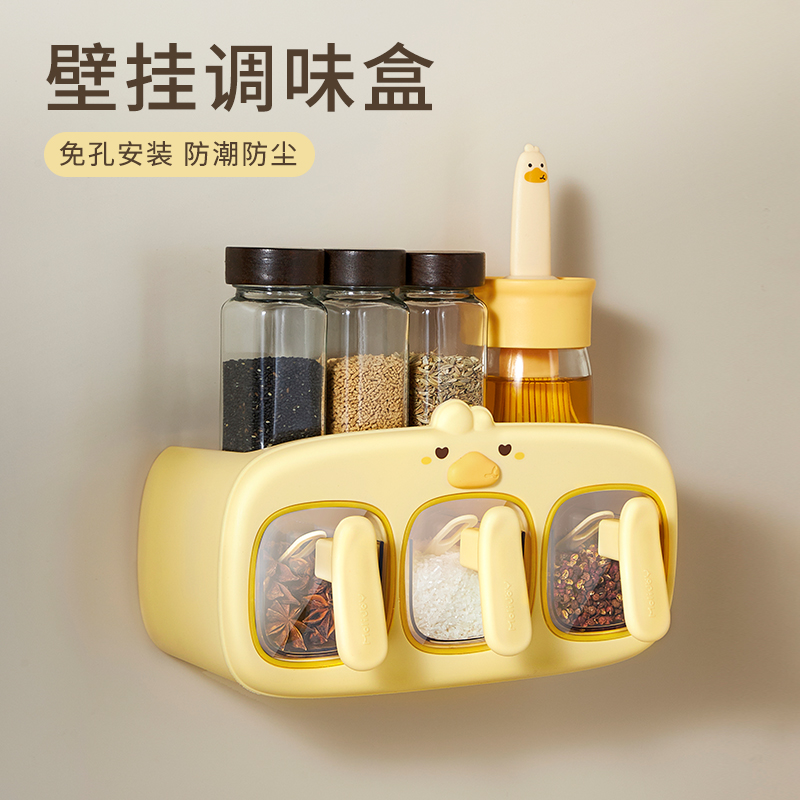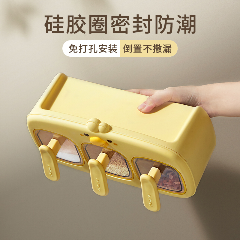 带密封圈防潮调料盒吸盘透明调料罐壁挂式 厨房调味料收纳盒盐罐子