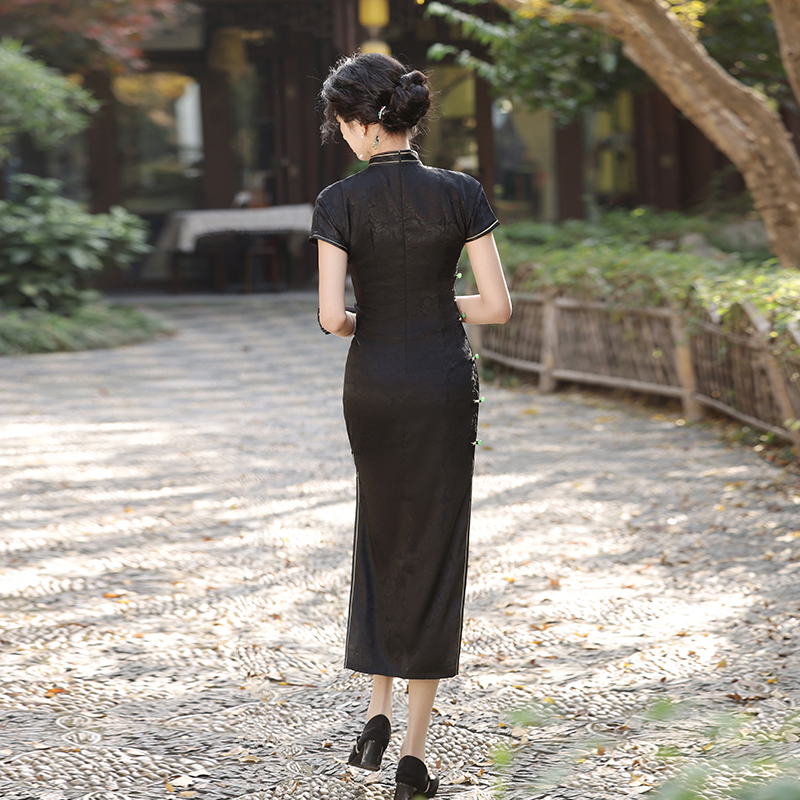 菲梦伊原创钉珠提花连衣裙女秋季 国风高端气质贵妇旗袍裙子 新中式