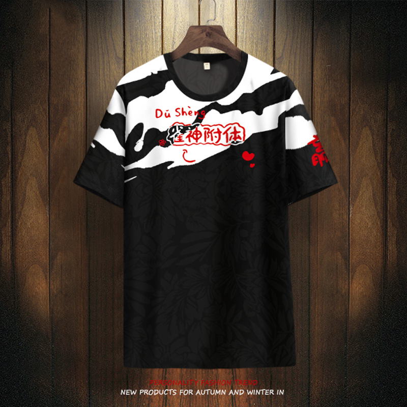 短袖 衣服情侣半截袖 冰丝上衣夏季 大码 黑色体恤衫 国潮麻将T恤男士