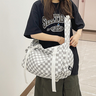 斜挎包男士 潮牌大容量斜跨单肩包简约休闲学生ins潮日系帆布包女