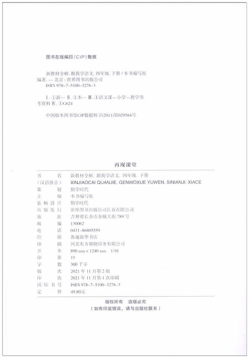 四年级第二学期4年级下 2022新版 人教部编版 数学再现课堂四年级下册 同步课本原文解读预习教师用书 课堂笔记新教材全解跟我学语文