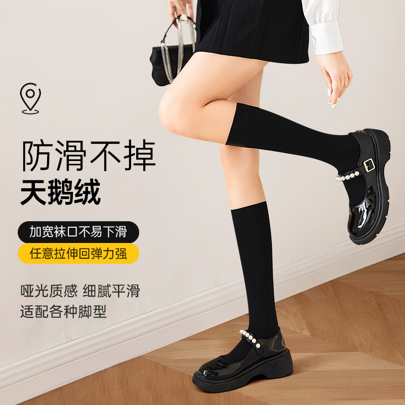 JKN压力小腿袜女春秋强压显瘦腿jk袜子黑色过膝高筒半中筒长筒袜