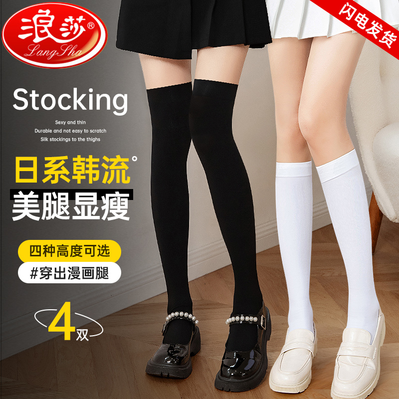 小腿袜子女春秋季 JK潮 过膝袜纯棉中筒袜微压显瘦无骨长筒长袜夏季