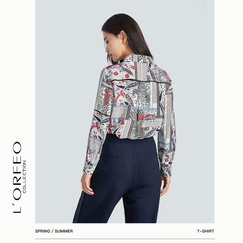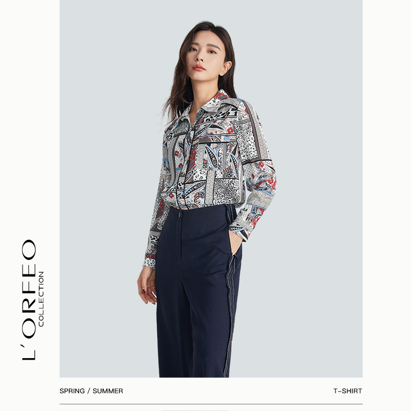 ORFEO 新款 奥菲欧法式 印花女2022年春季 休闲气质桑蚕丝多彩衬衫