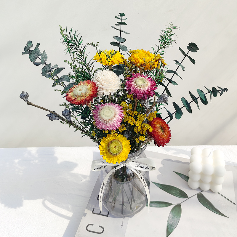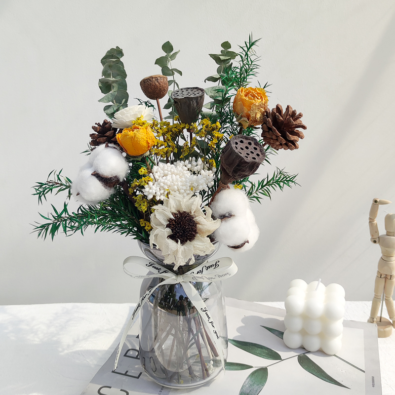 干花花束客厅摆设永生花装 饰摆件真花天然尤加利叶芦苇轻奢高端