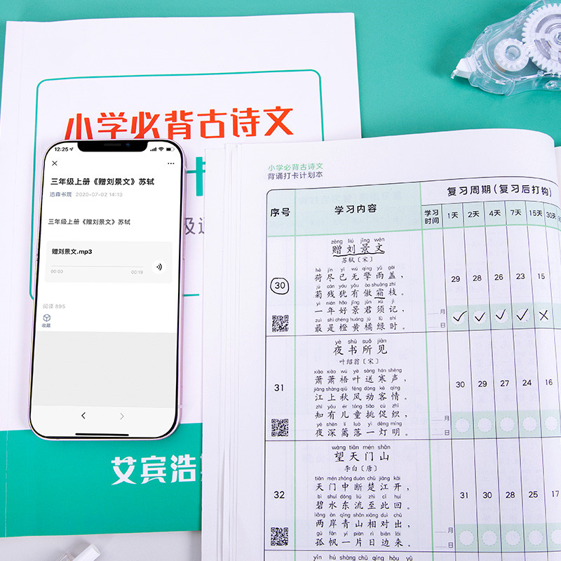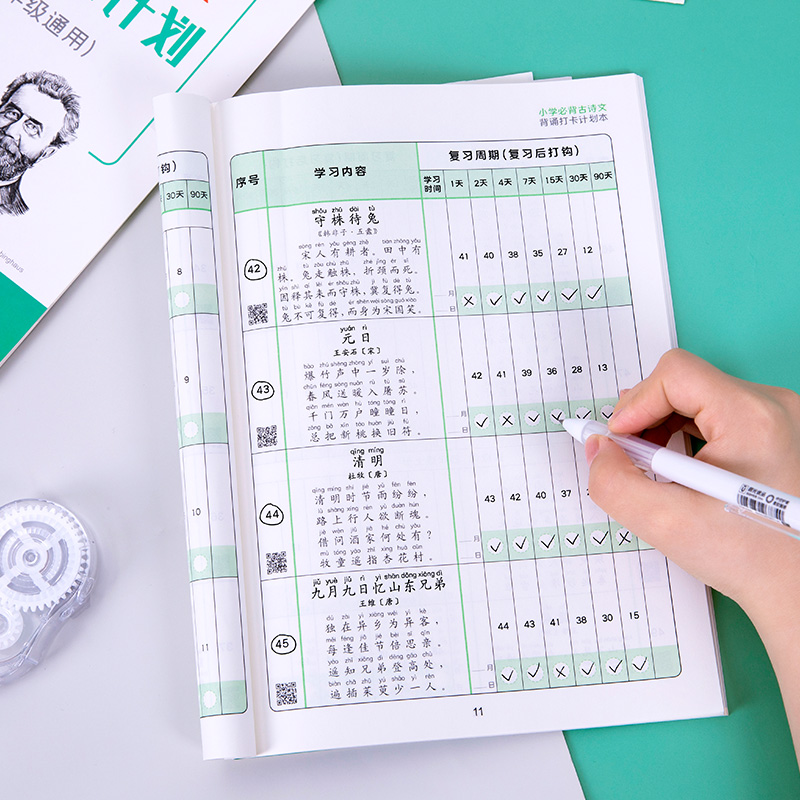 小学生必背古诗词背诵打卡计划本1 6年级同步课本默写本标准专用语文阅读复习计划本艾宾浩斯记忆本背诵本