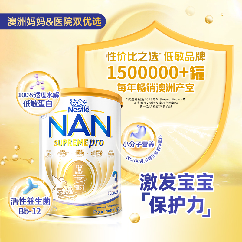 雀巢澳版 超级能恩3段适度水解益生菌低敏防护婴幼儿奶粉800g