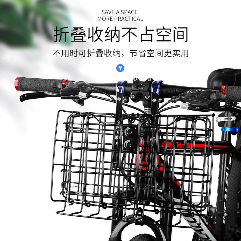 山地自行车前车筐折叠电动单车头篮筐篮子前置后座架置物筐篓蓝框
