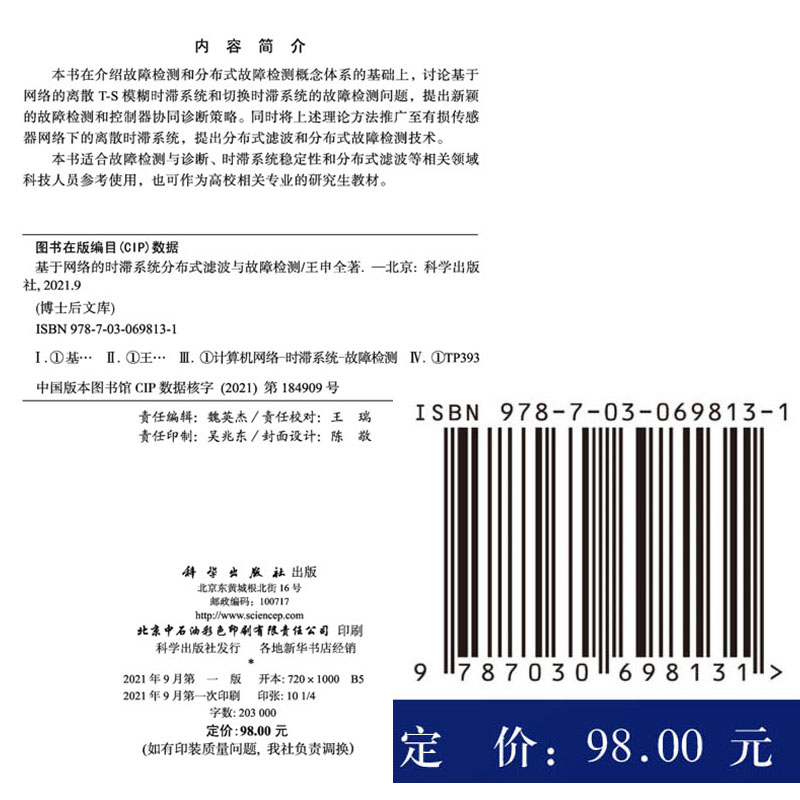 时滞系统分布式 基于网络 滤波与故障检测 王申全 社9787030698131 正版 科学出版 现货