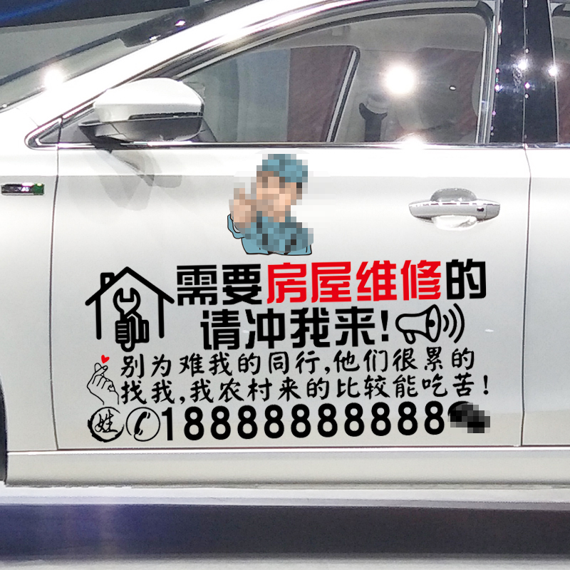 汽车个性 维修房子修缮 创意广告车门后档贴纸 房屋维修车贴 魂速
