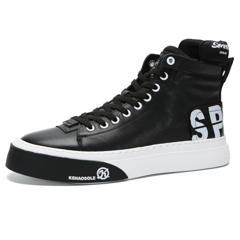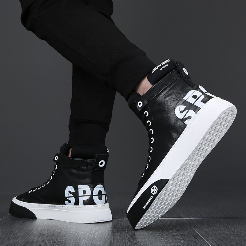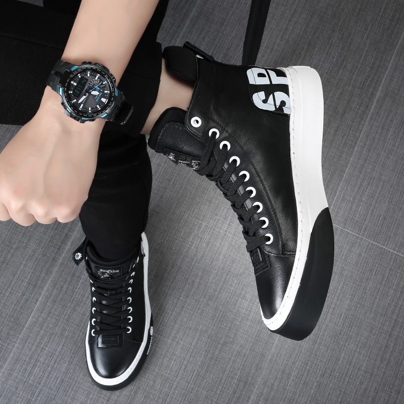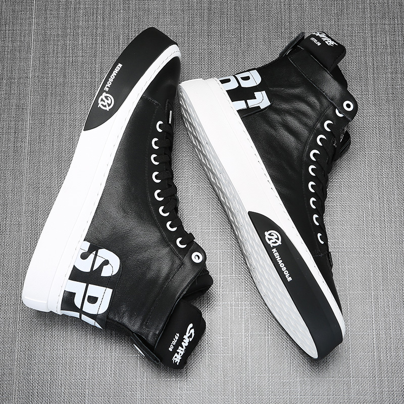 靴子 真皮防水厚底增高工装 森马马丁靴男秋季 高帮百搭休闲白色板鞋