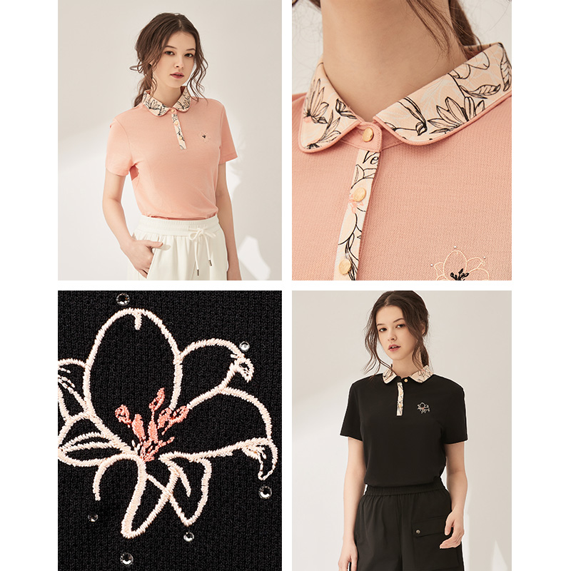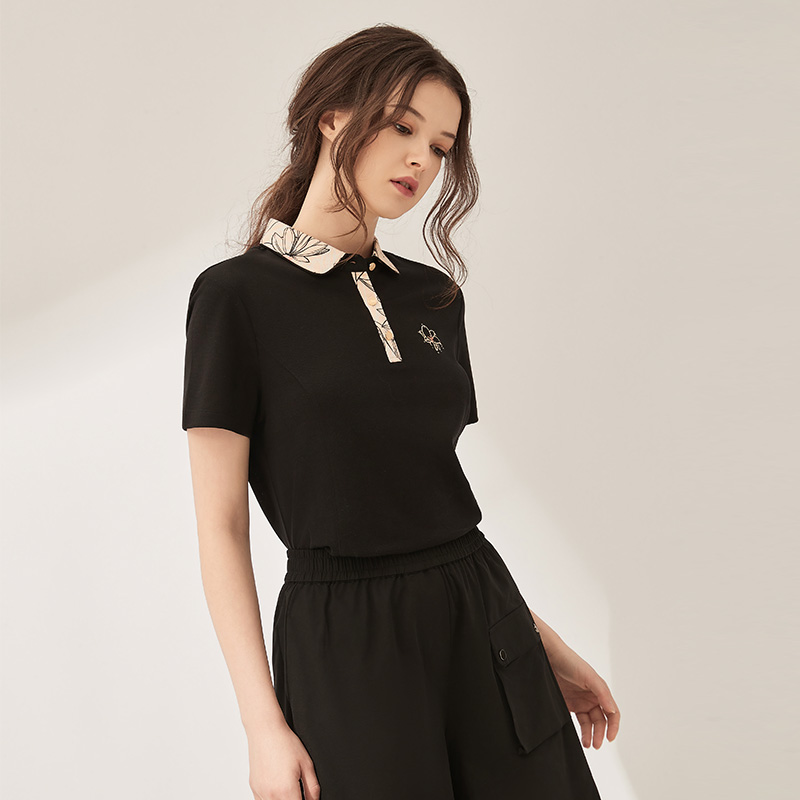 女短袖 翻领t恤女士polo衫 宽松体恤女 梵思诺桑蚕丝款 versino