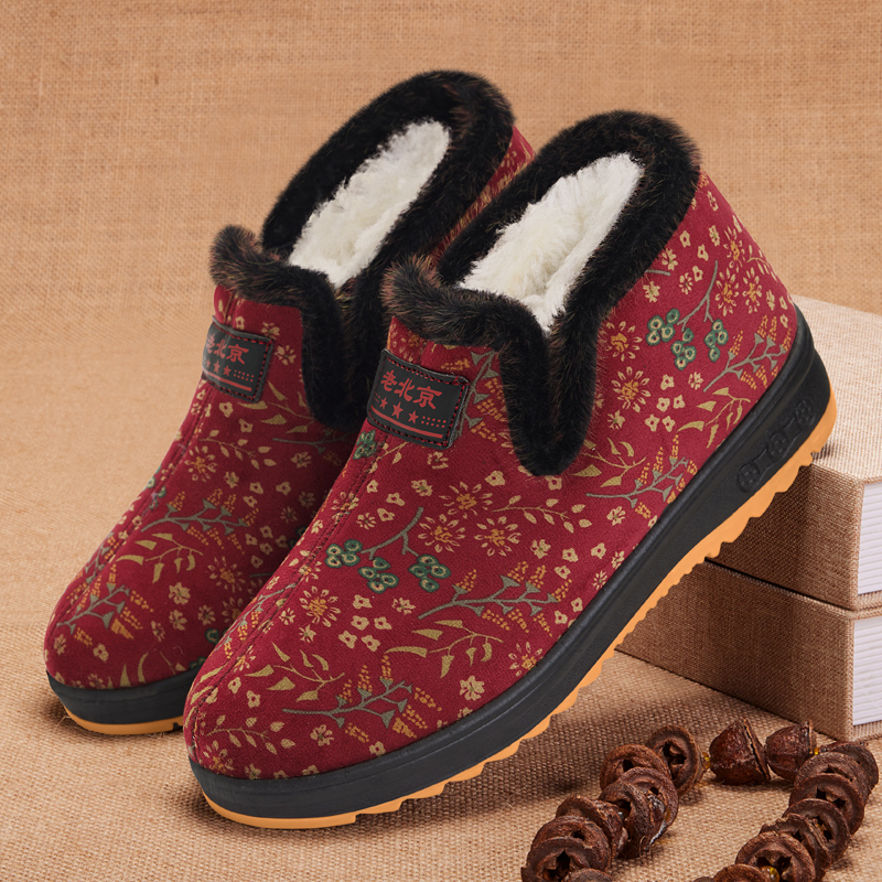 奶奶羊毛保暖加绒老太太防滑老人鞋 冬季 妈妈棉鞋 女新款 老北京布鞋