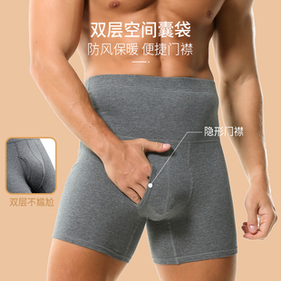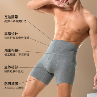 头 男收腹加长加大防磨腿深裆平角裤 猫人纯棉高腰男士 保暖运动内裤