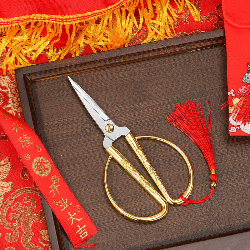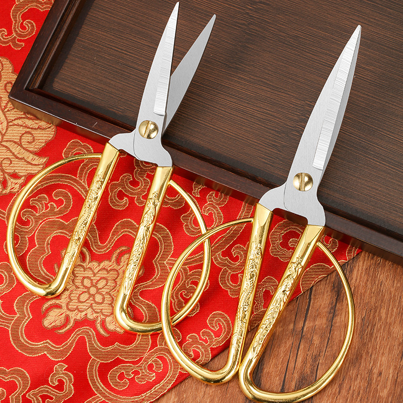 艾黎金色龙凤剪开业剪彩剪刀托盘结婚仪式 庆典办公尖头尖嘴不锈钢剪子家用手工剪纸布线头开茶叶十字绣专用品
