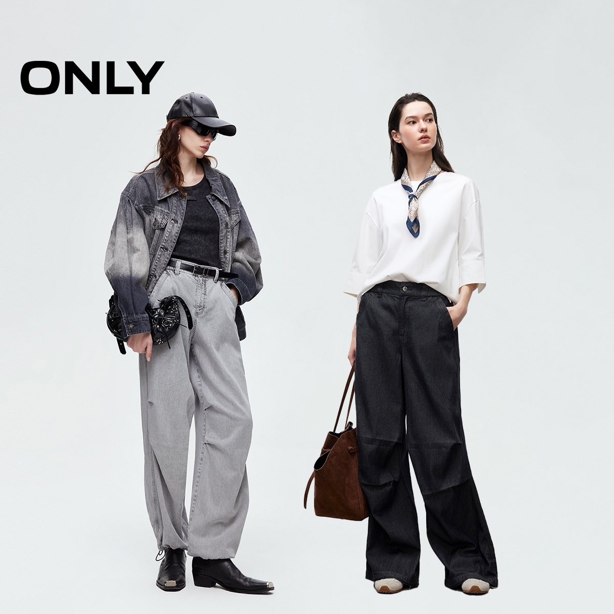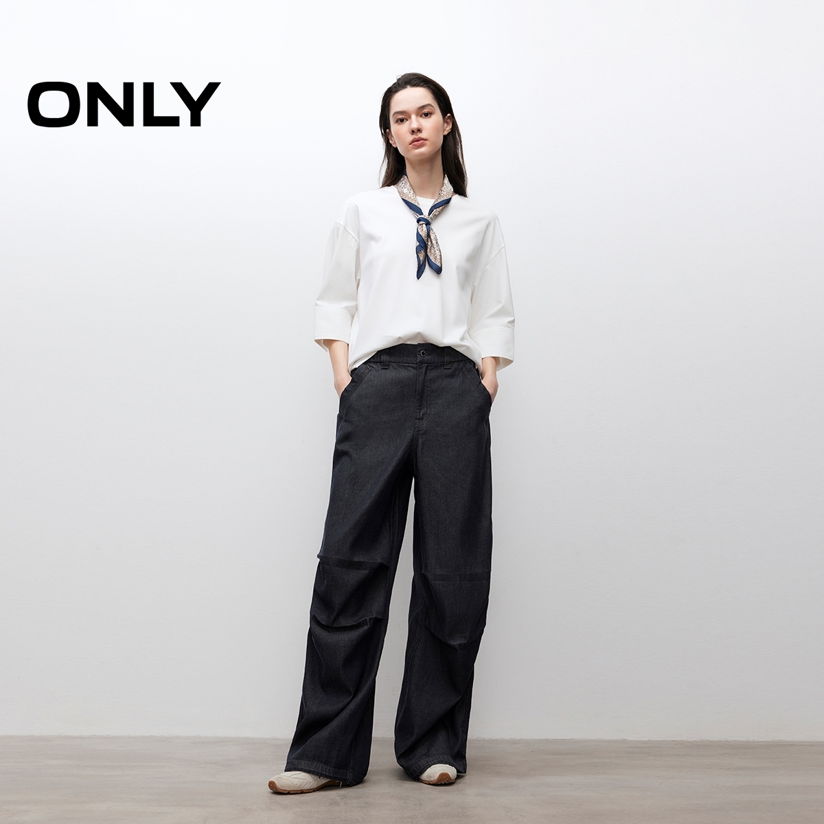 女翻边长裤 森马牛仔裤 2025秋季 新款 森柔牛仔 宽松阔腿裤 商场同款