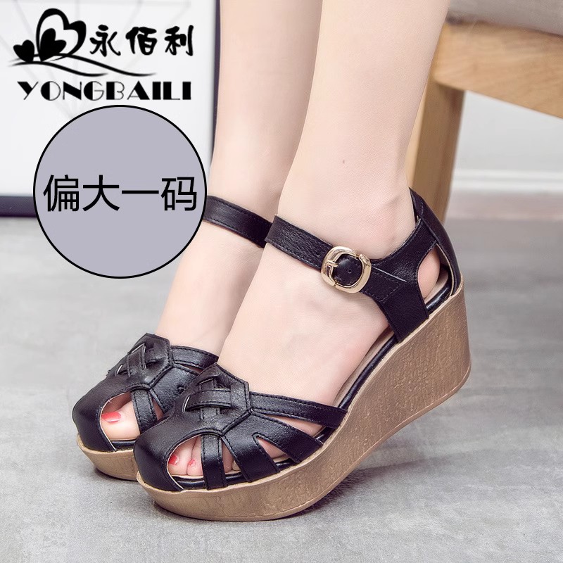 猪笼鞋 松糕休闲舒适镂空高跟中空女鞋 女皮鞋 厚底真皮凉鞋 2025新款