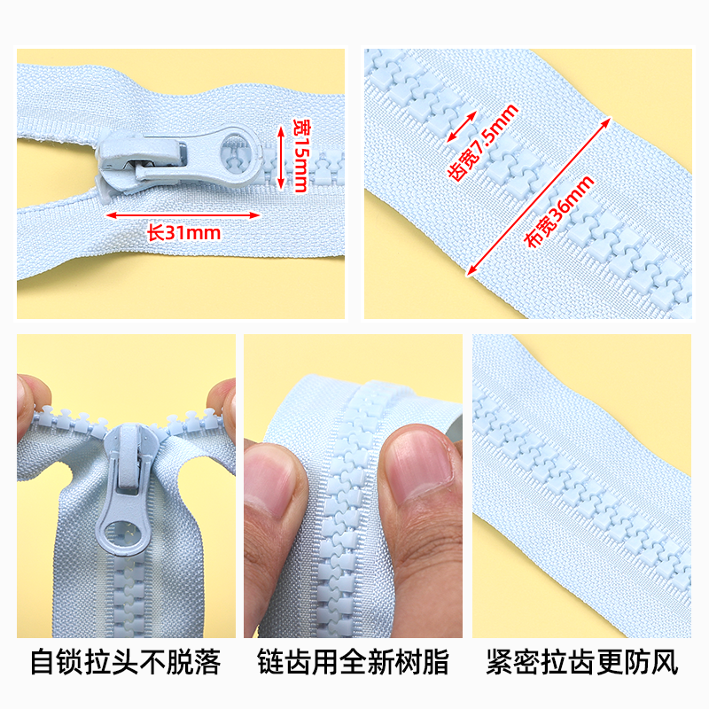 衣服拉链配件装 饰5号树脂长拉锁可拆卸黑色红色开尾羽绒服拉链65
