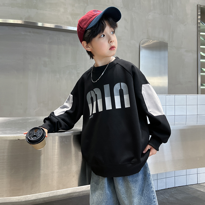 男大童春秋韩系白色拼接卫衣2025新款 宽松帅气上衣潮 儿童男孩秋装