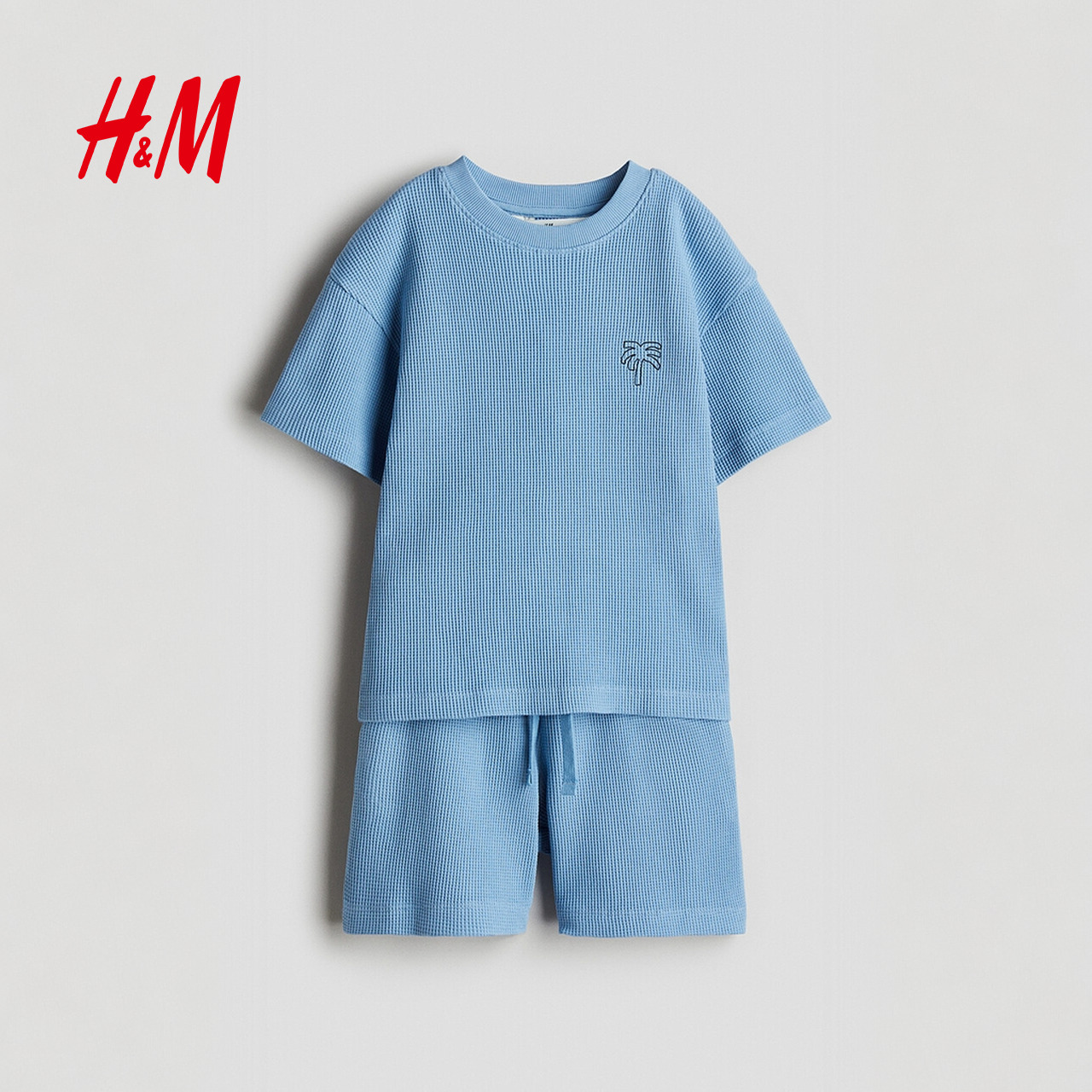 短裤 HM童装 华夫格恐龙印花短袖 2025年秋新款 1281882 儿童男童套装