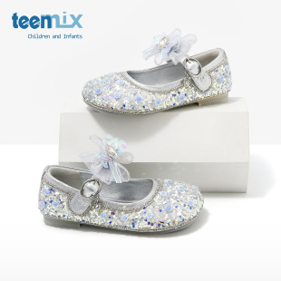 儿童小皮鞋 软底单鞋 2025新款 亮钻艾莎水晶鞋 春季 天美意女童公主鞋