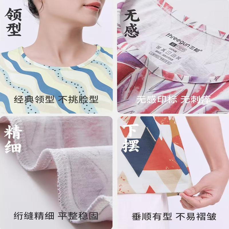 亲肤透气中老年打底宽松大码 小衫 上衣 女纯棉t恤妈妈半袖 三枪短袖