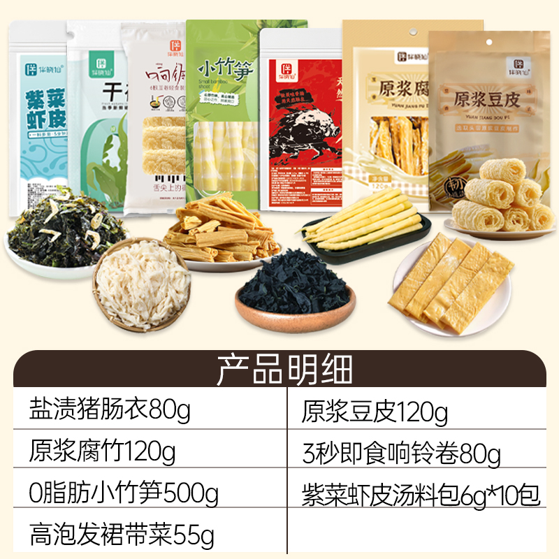30元 伴晓仙紫菜虾皮原浆纯手工头层豆腐皮竹笋火锅食材 任选4件