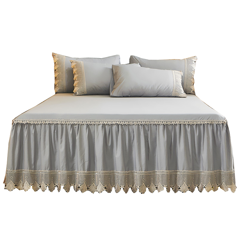 60贡缎全棉长绒棉床裙单件蕾丝花边床罩式 1.8m纯棉床套防滑床围裙