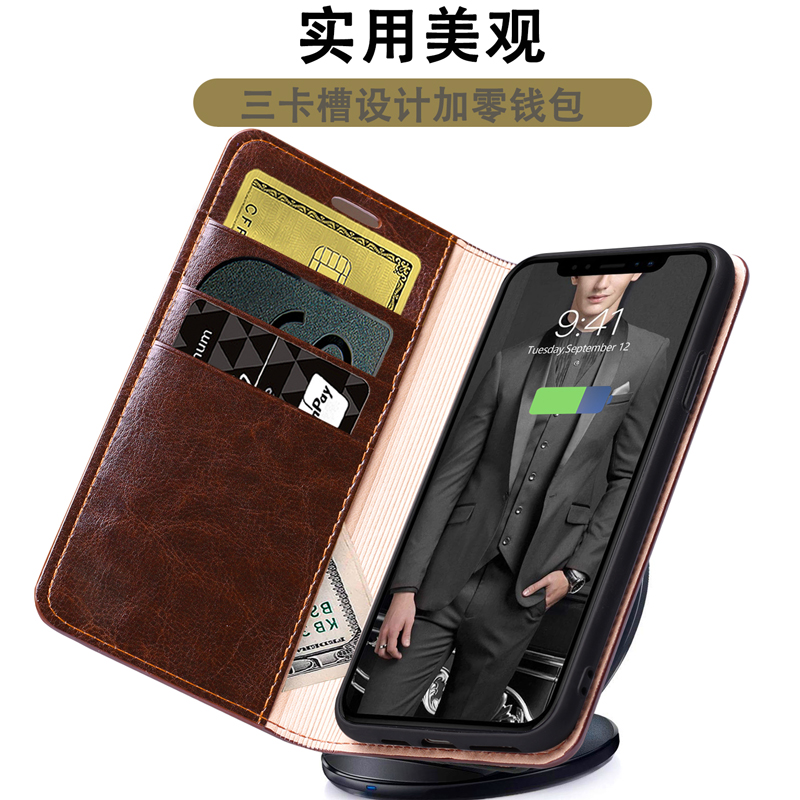 牛皮荣耀v8翻盖式 8手机壳真皮v10商务荣耀10新款 9皮质男女全包防摔保护皮套 9v8 适用于华为荣耀v10