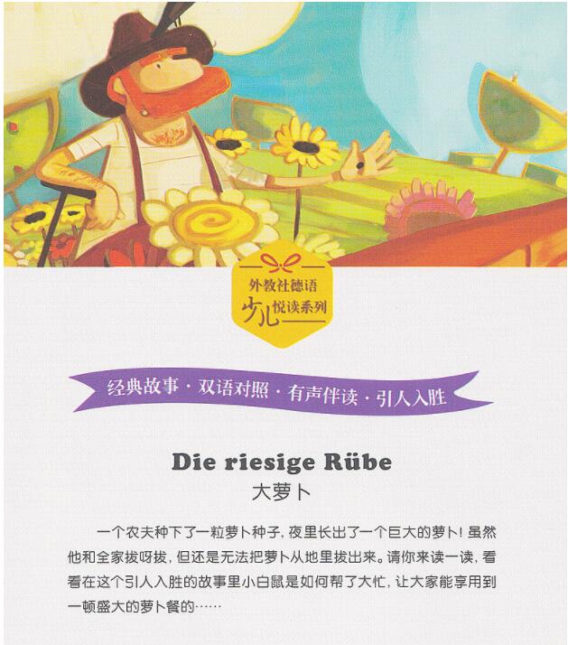 听音频 上海外语教育 太阳与风 丑小鸭 全5册 姜饼小人 大萝卜 野生动物园历险记 外教社点读书 外教社德语少儿悦读系列 扫码 第1级