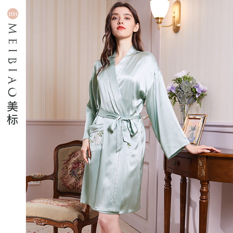 美标重磅真丝睡袍晨袍两件套桑蚕丝吊带睡裙性感丝绸睡衣家居服夏