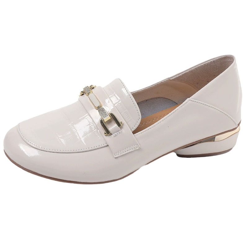 平跟软底圆头米白色配裙子真皮女鞋 单鞋 2025新款 头层牛皮漆皮春鞋