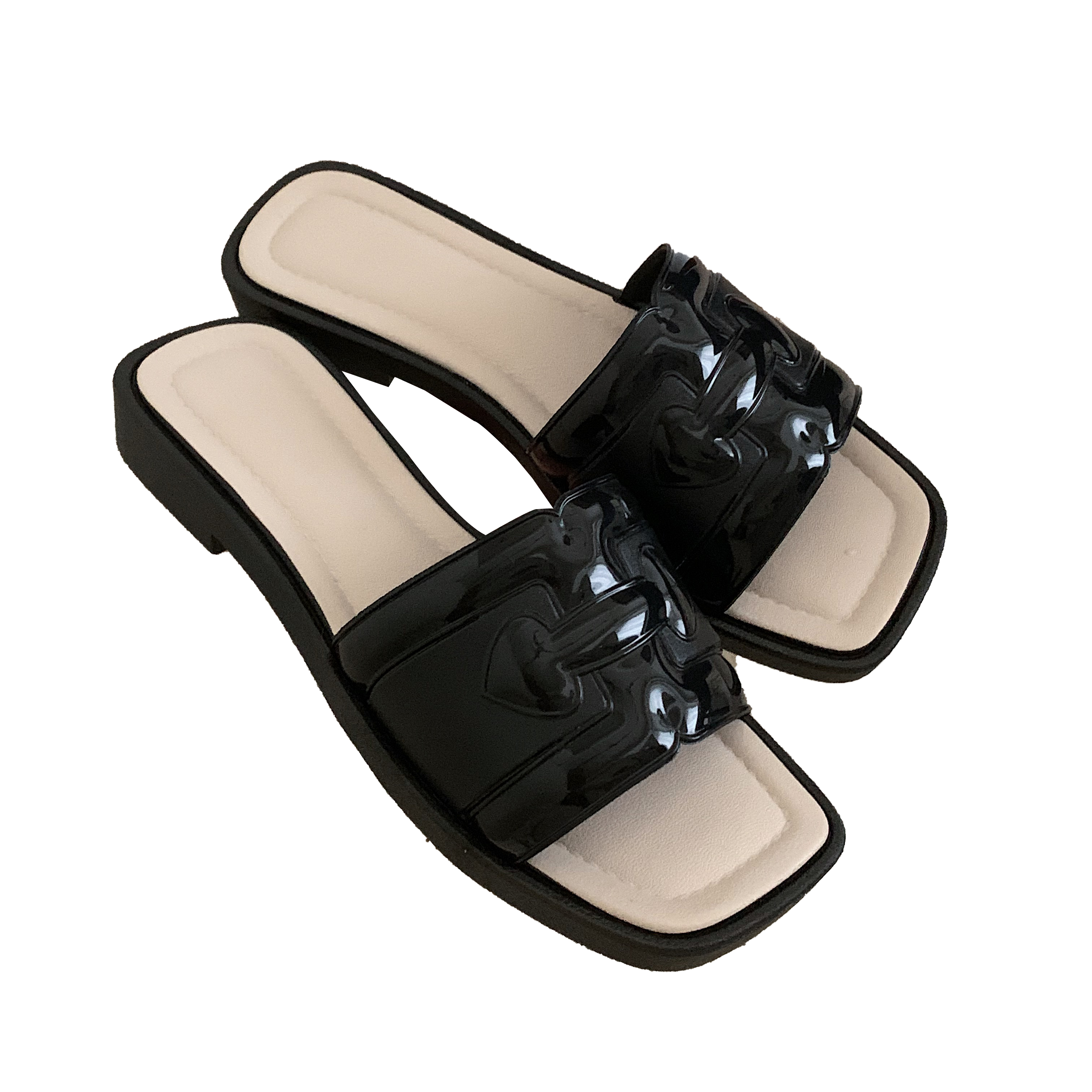 休闲海边度假外穿防滑一字凉拖鞋 方头平底沙滩鞋 百搭时尚 女夏个性
