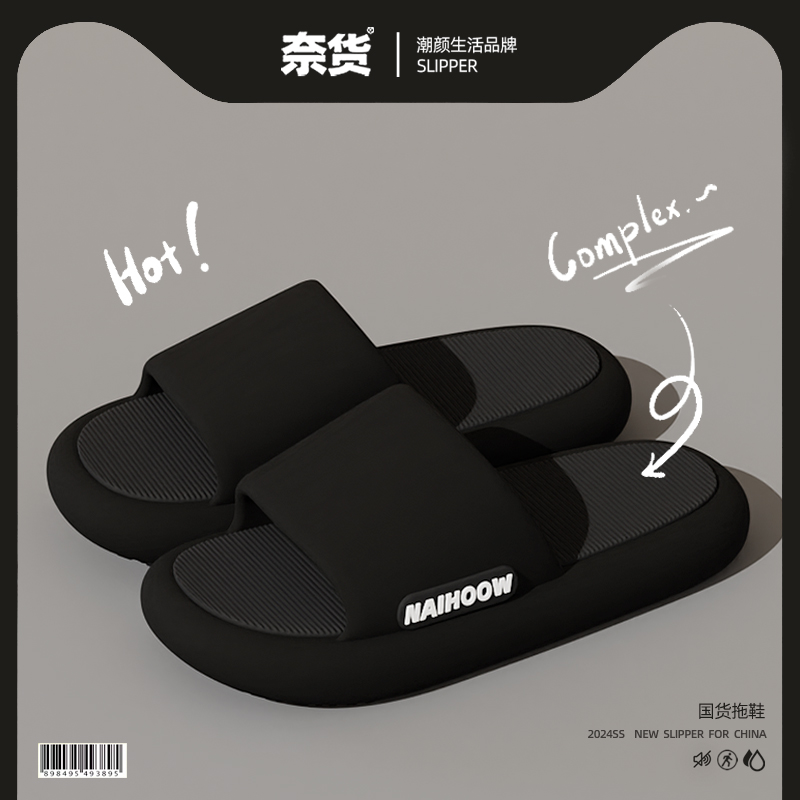 潮流室内静音防滑户外沙滩情侣一字拖男 外穿潮牌夏季 奈货拖鞋 男士