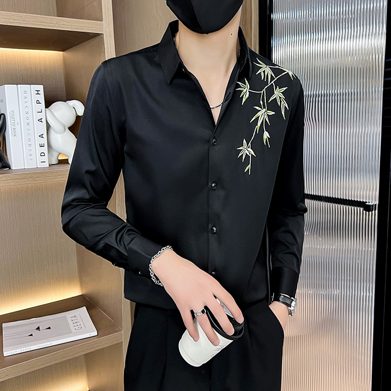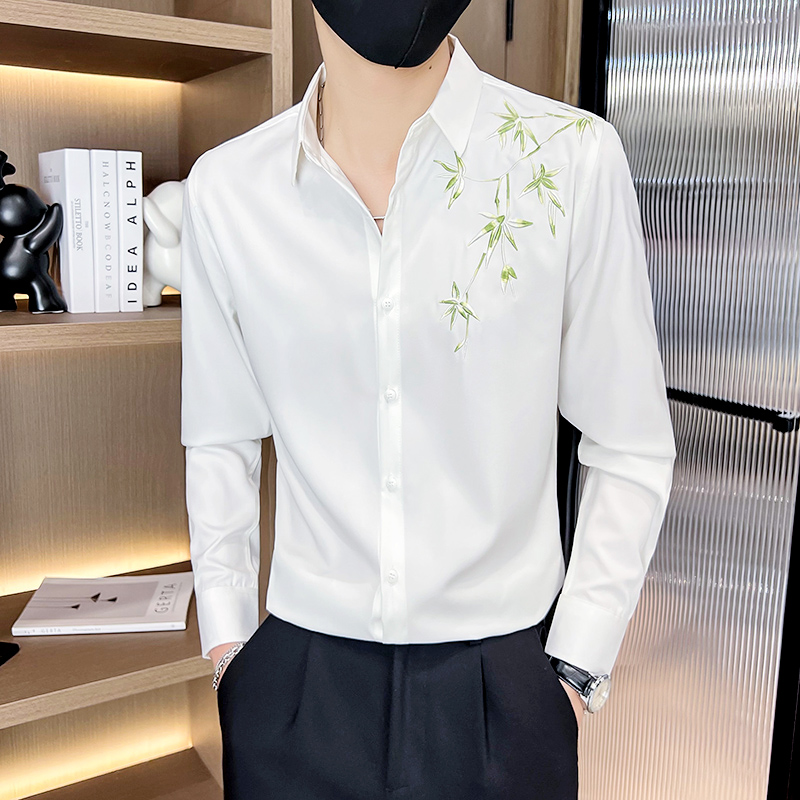 VISION高支纯棉牛津布十字花刺绣长袖 CLIMAX 衬衫 明星同款