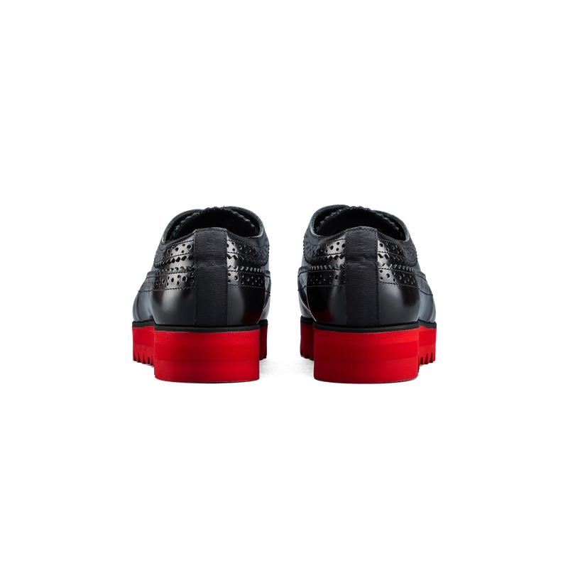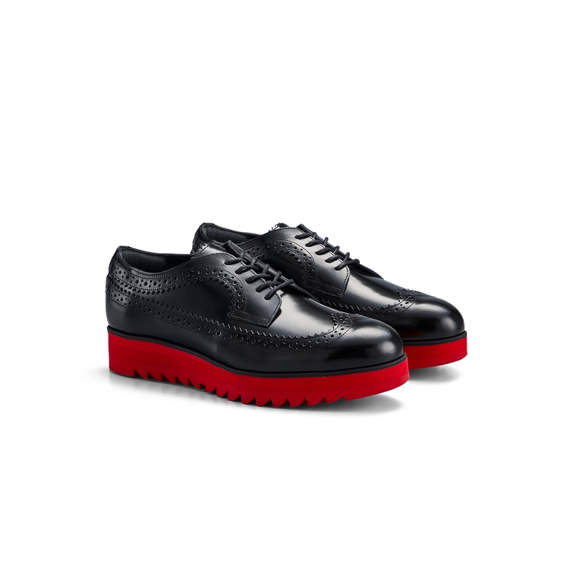 2025秋新款 布洛克中粗跟皮鞋 HL257112 系带牛津鞋 哈森漆皮德比鞋