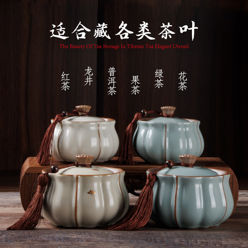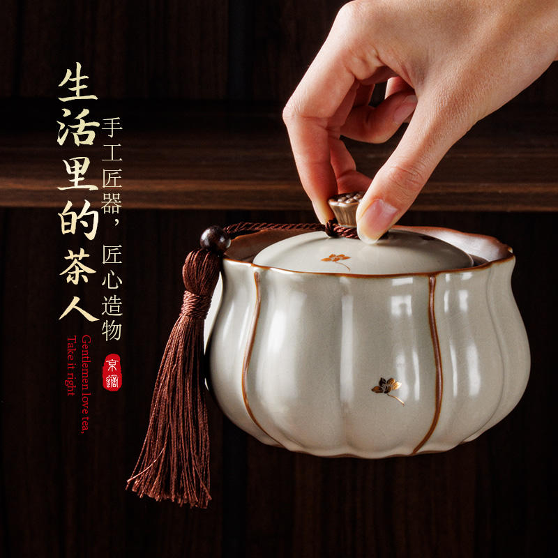 陶瓷茶叶罐密封罐储存汝窑高档中式 小茶罐豆黄罐子存茶具摆件空罐