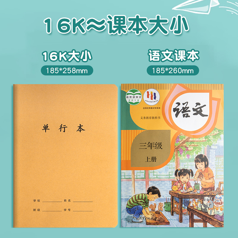 B5单行本小学生作业本厚本子16K牛皮纸练习本三年级四五六年级语文本数学本写字双行本初中生专用学科抄写本
