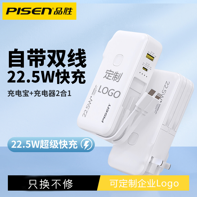 品胜自带插头充电宝充电器二合一10000毫安自带线电霸20000超大容量适用苹果华为专用快充正品 国家3C认证