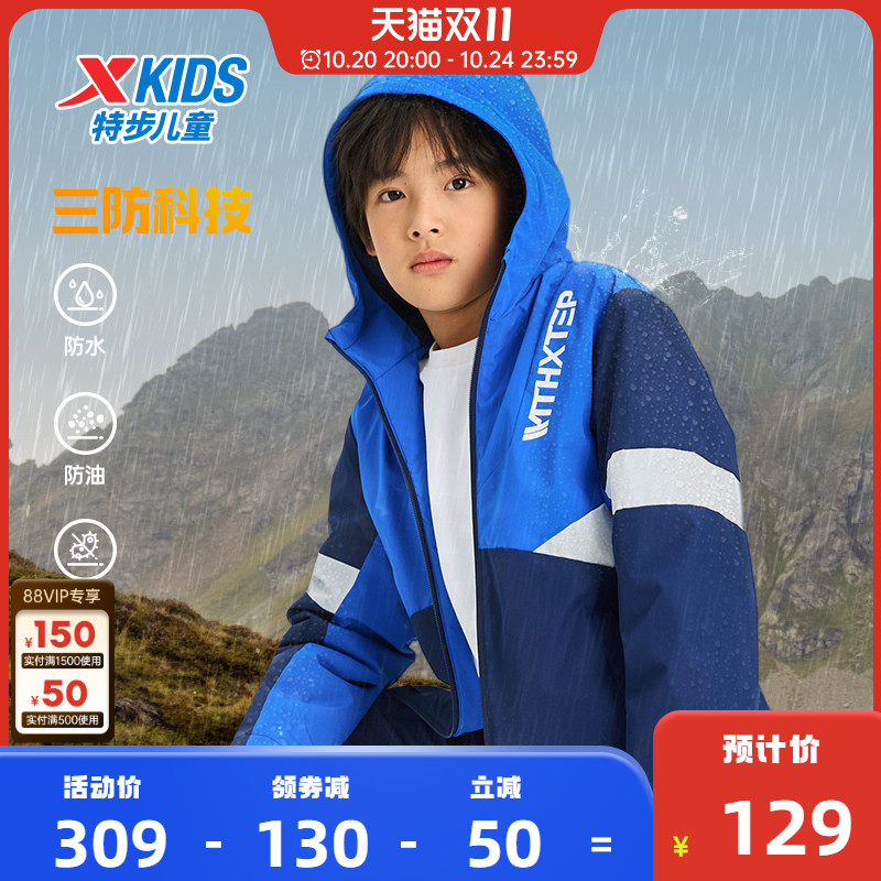儿童冲锋衣三防户外防风运动上衣秋装 新款 男 男童外套秋季 特步童装