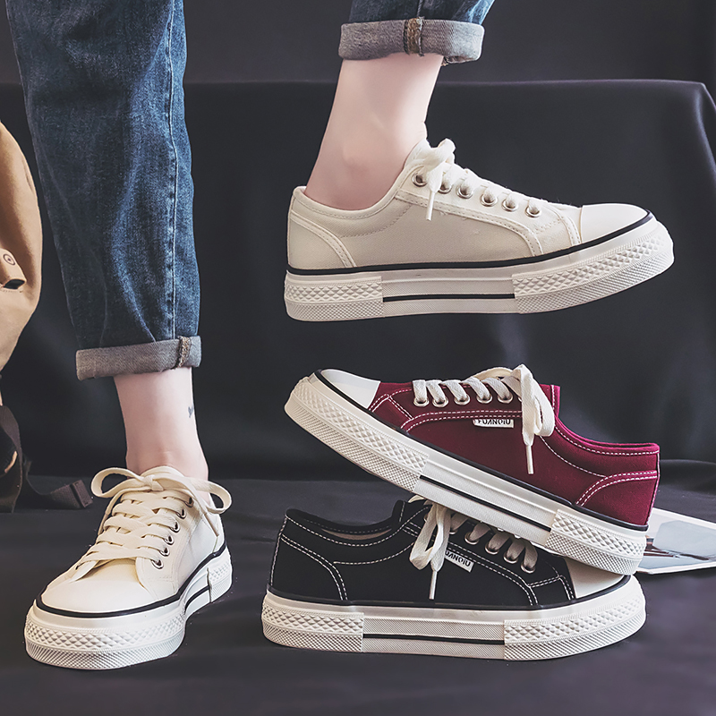 新款 2025年秋季 爆款 学生百搭鞋 环球酒红色帆布鞋 子女休闲板鞋 女款