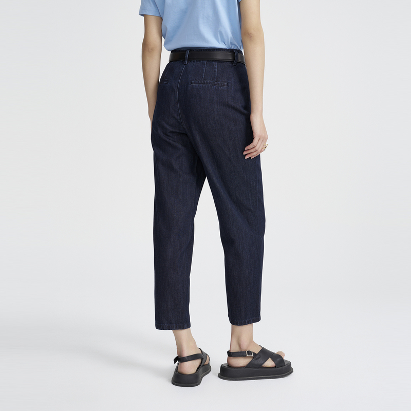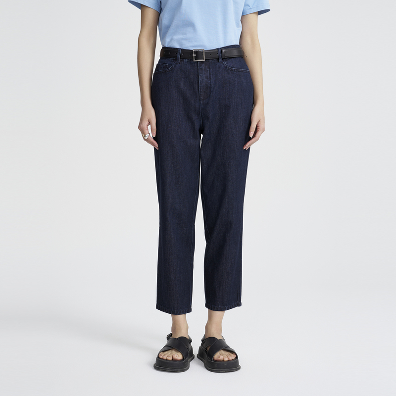 百搭九分裤 OTT春季 女宽松垂感直筒萝卜裤 深蓝复古水洗牛仔裤 新款