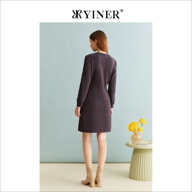 法式 女装 YINER音儿冬季 优雅绵羊毛V领连衣裙 裸感羊绒