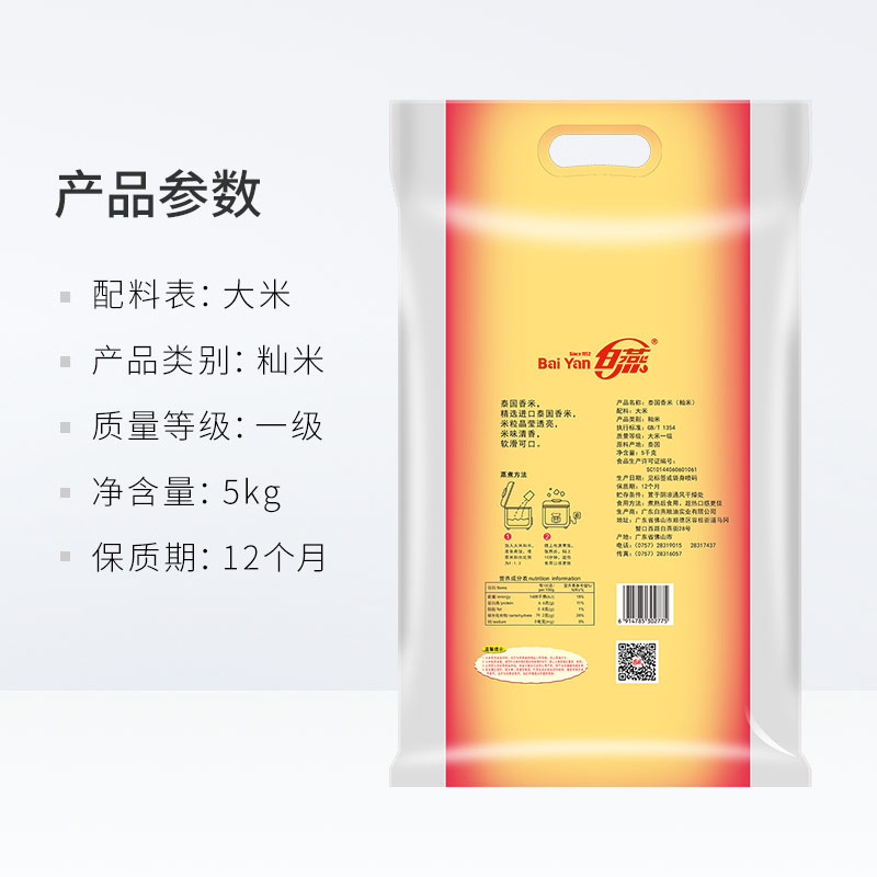 长粒米 籼米 香满园泰上茉莉香大米5kg 1袋泰清香大米