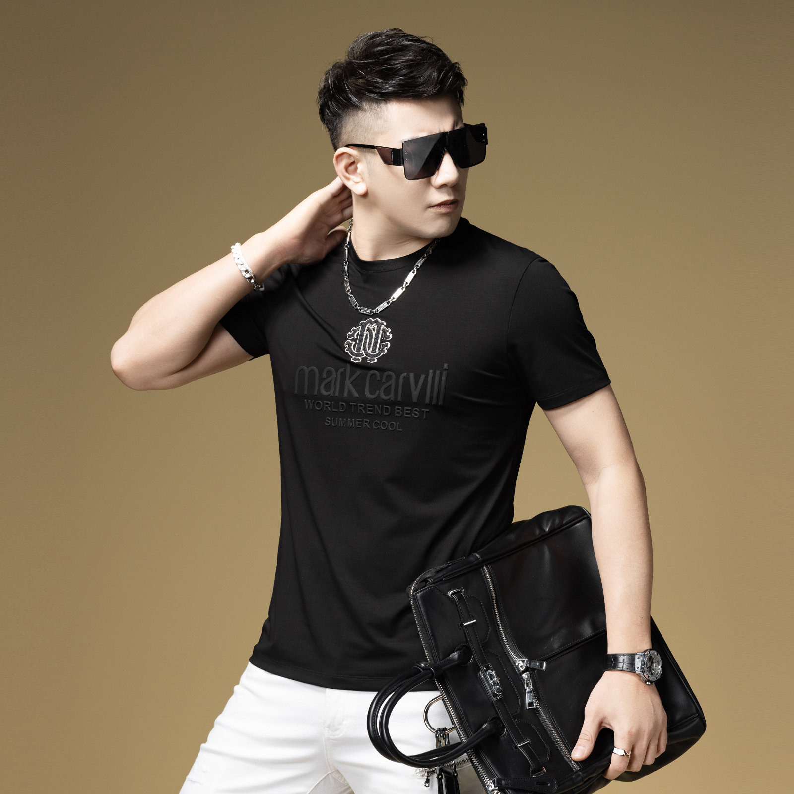 夏季 BM欧美高街t恤男潮牌潮流短袖 字母圆领打底衫 时尚 男2024新款