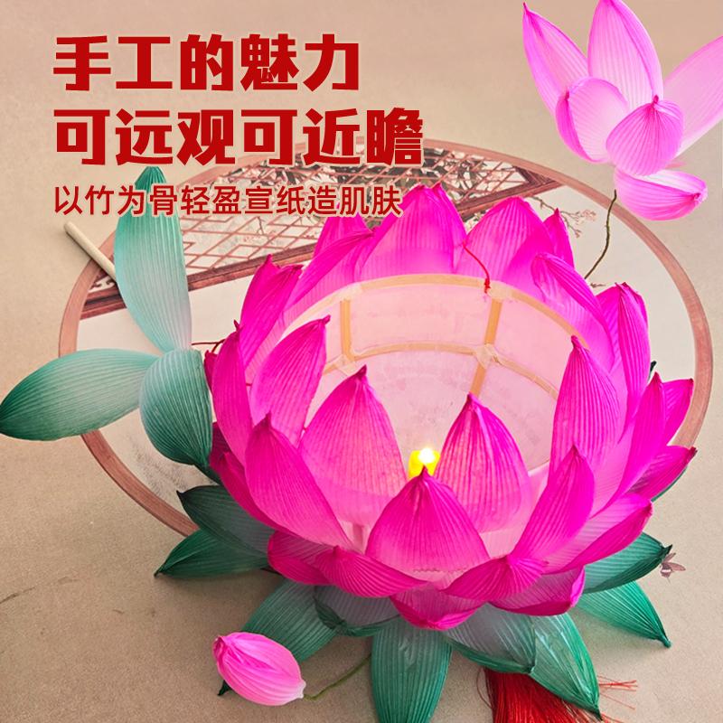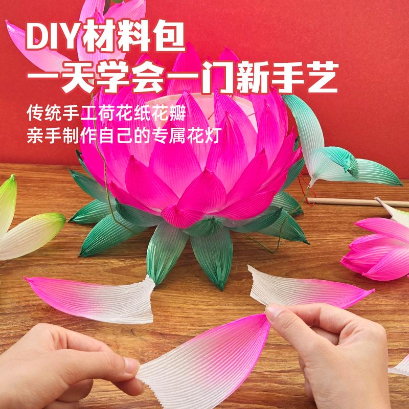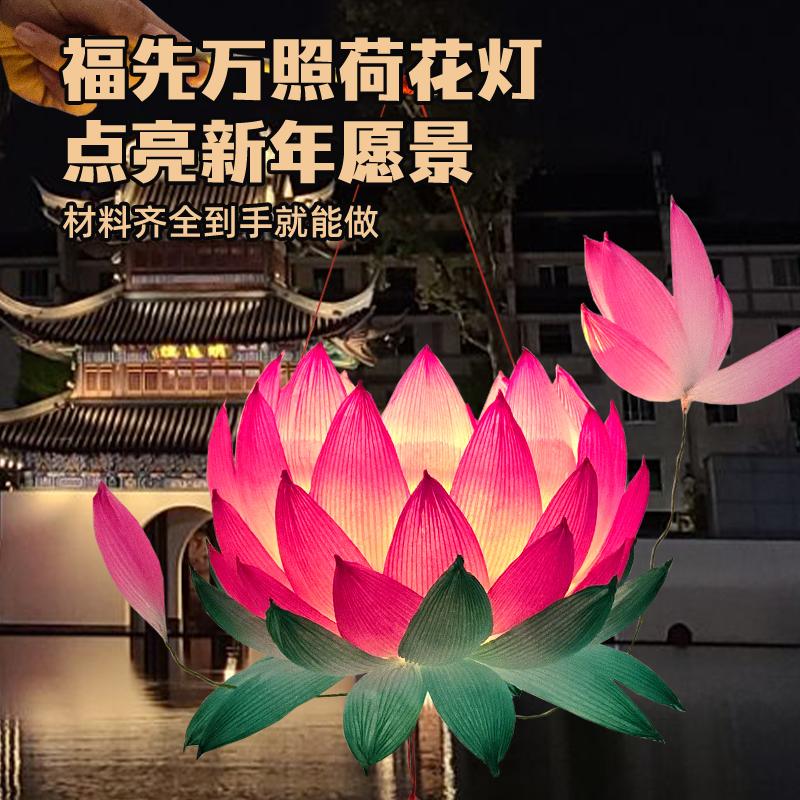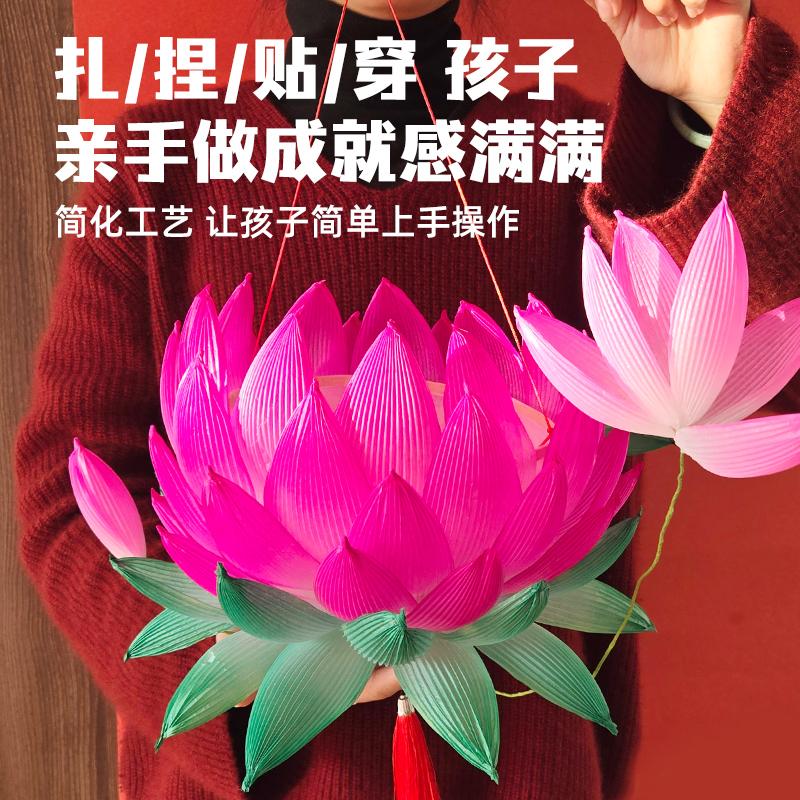 手工diy灯笼荷花灯儿童手提发光非遗莲花灯制作材料玩具生日礼物